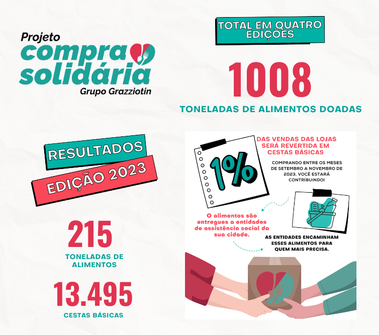 Venha conhecer as ações do Projeto Compra Solidária. Por meio dessa iniciativa, o Grupo Grazziotin reafirma seu compromisso social de cuidar das pessoas, que é nosso principal e primeiro valor. Clique e saiba mais!